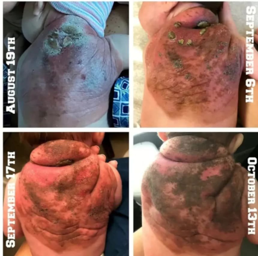 James McCallum, a toddler from Clearwater, Florida, has a unique condition that earned him the nickname “little Ninja Turtle” from his parents, Kaitlyn and Tim. This nickname came about because James was born with a rare skin condition that looked like a turtle shell on his back. The couple had no idea their baby had this condition while Kaitlyn was pregnant. Even though they had multiple ultrasounds, none of them showed any sign of what was to come.Right after James was born, his parents noticed that his back had some strange lumps and scabs. As time passed, the condition began to spread. Eventually, it covered around 75% of his back. The “shell” wasn’t just unusual to look at -it started to affect James’ everyday life. It was uncomfortable for him, and it made it hard for him to sleep. His parents were worried, and doctors weren’t entirely sure what was going on.